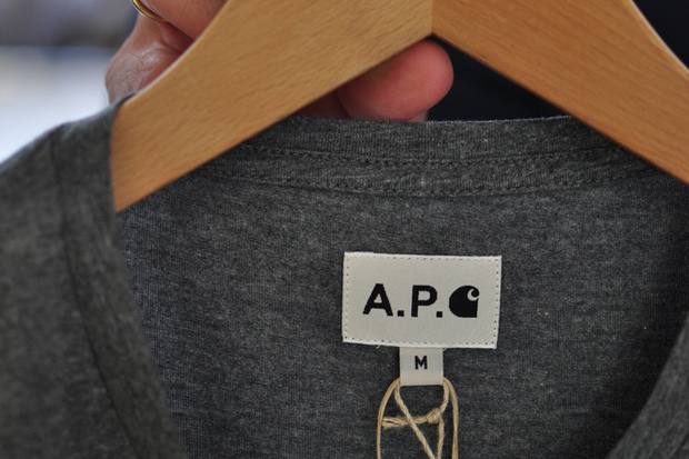 Today we get a sneak preview of what is to come from high-end streetwear brands, A.P.C & Carhartt. Brought to us by the folks at Tres Bien Shop, we get a look at the simple, yet stylized 2012 Spring/Summer collection from these two brands, focusing on solid pocket t-shirts, canvas jackets and what looks like at least 2 types of pants, expanding next year with new colorways and improved garment designs. Definitely going to be a sweet collection, just going to have to wait a bit to see more. Hit the jump for the pics.